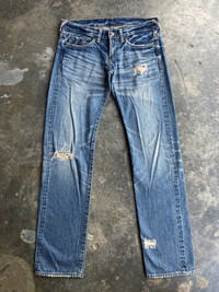 Please take note this is used item. Read description carefully or can ask me anytime about this trouser. All item are Sold in as- Is condition. WAIST : 32 inches OUTSEAM : 40 inches INSEAM : 32.5 inches THIGH : 10inches RISE : 7.5 inches LEG OPENING : 7.5 inches OVERALL CONDITION : Good vintage condition "Item are measured in inches while flying flat. To ensure a good fit try measuring a piece in your closet that you would like to fit similary. Colour may vary a bit due to innefficiency of camera and excessive lightning.