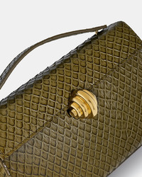 With its vintage-inspired silhouette and elegant python-effect texture, the Alex Bag is both timeless and distinctive. Crafted by skilled artisans in Italy and accented with light gold-toned hardware, it features a safari-green hue that's perfect with warm neutrals or soft pastels. Push clasp fastening Detachable shoulder strap Signature logo detailing Aquamarine dust bag Product: AEXSHBS0-PYH-SGG Made in: ITALY
