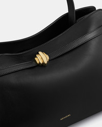Our Alex Tote bag makes the perfect addition to a timeless wardrobe. Crafted in Italy from supple calf leather in classic black, it has an elongated design with a tonal strap that cinches the shape – complete with a sculptural decorative metal accent that's fast becoming an Aquazzura signature. Open top Top handle Signature logo detailing Aquamarine dust bag Product: AEXTOTT0-CAL-BLD Made in: ITALY
