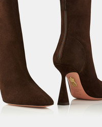 Our Amore Booties will foster your belief in love at first sight. Crafted in Italy from 'Espresso' suede, the elegant silhouette rests on a sculptural heel that adds instant intrigue to any look. The unique design is equal parts versatile and impactful – the ultimate wardrobe staple for transitional dressing. Back zipper Pointed toe High heel Padded leather insole Signature logo detailing Product: AREHIGB0-SUE-ESP Made in: Italy