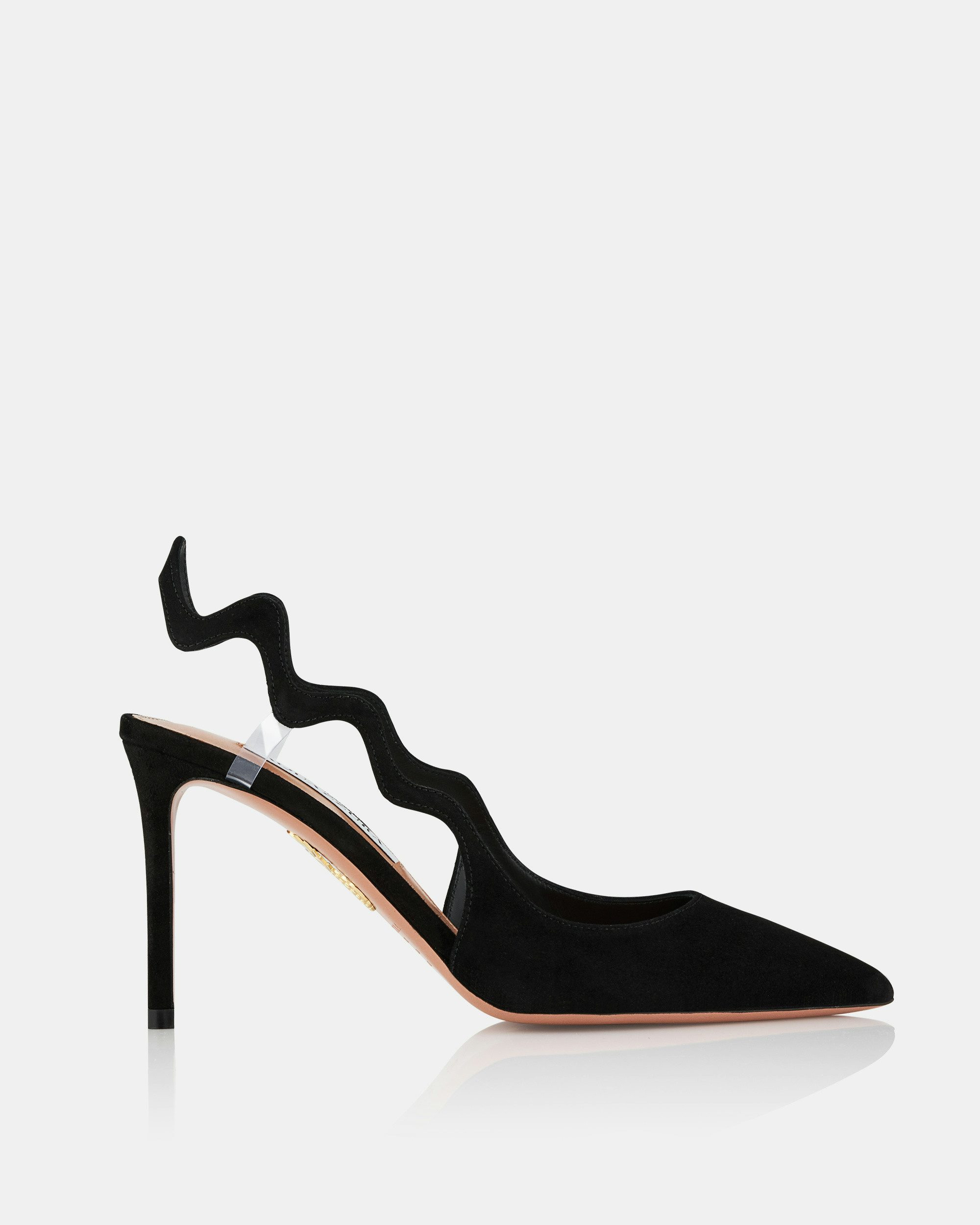Effortlessly timeless with a playful twist, our Artiste Sling Pump reimagines the classic slingback silhouette with its undulating strap, subtly supported by clear PVC inserts. Made from velvety black suede that pairs seamlessly with any wardrobe, it’s finished with a pointed toe and sleek stiletto heel for refined elegance. Slingback strap Mid heel Padded leather insole Signature logo detailing Product: ARTMIDL1-SPV-000 Made in: ITALY