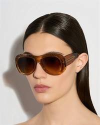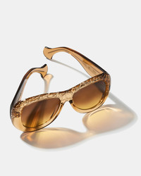 Oversized eyewear reigns supreme this season, as evidenced by these Bella sunglasses. Crafted in Italy from translucent acetate, the chunky silhouette is enriched with a textured metal core encased within the temples and a 3D-effect crocodile motif on the upper rim and bridge – showcasing the brands expertise across a variety of materials. The tonal gradient lenses and Aquazzuras unmistakable logo in gleaming gold highlight the depth of the timeless tan shade. Oversized shape Acetate frame Brown gradient lenses UV protection Signature logo detailing Silver branded case and cleaning cloth Lens width: 5.5cm Bridge width: 1.6cm Temple length: 14cm Made in Italy Product: BLAEYES0-ATE-FDT Made in: Italy