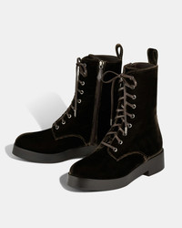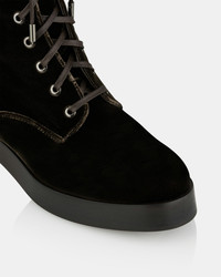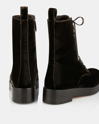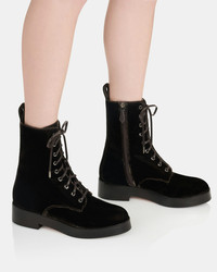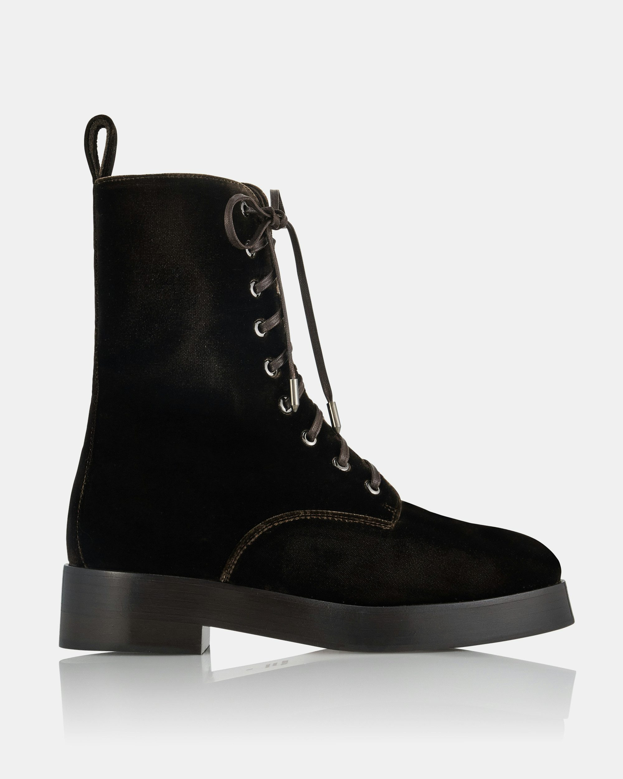Our Ben Booties are expertly crafted in Italy from soft black velvet. The plush texture is juxtaposed with a classic workwear silhouette, featuring a lace-up front and chunky rubber soles—striking the perfect balance between rugged durability and refined elegance. Endlessly versatile, they pair effortlessly with everything from tailored denim to flowing skirts, adapting seamlessly to your style. Zipper closure Flat heel Padded leather insole Signature logo detailing Product: BBNFLAB0-VEL-ESP Made in: ITALY