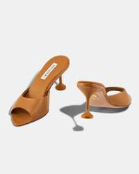 Timeless in its simplicity, the Bisous Mule makes a chic statement with its backless profile, open toe and gently fluted heel, which lends it a sculptural quality. Its crafted from supple leather in a versatile light-caramel shade that keeps every outfit elevated. Slip-on shoes Mid heel Padded leather insole Signature logo detailing Product: BISMIDM1-NAP-LTC Made in: Italy