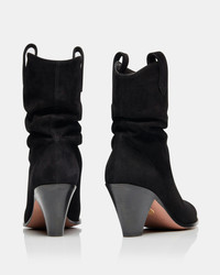 Slip into our Western-inspired Boogie Cowboy boots this season. This on-trend style is crafted in Italy from our velvety suede in rich black and features a classic, pointed toe and sits upon a comfortable mid heel. Pair yours with a chic mini or slim denim. Pointed toe Covered heel Leather lining Leather insole with Aquazzura Firenze stamped in gold Leather sole with embossed Pineapple logo Product: BOOMIDB1-SUE-000 Made in: Italy