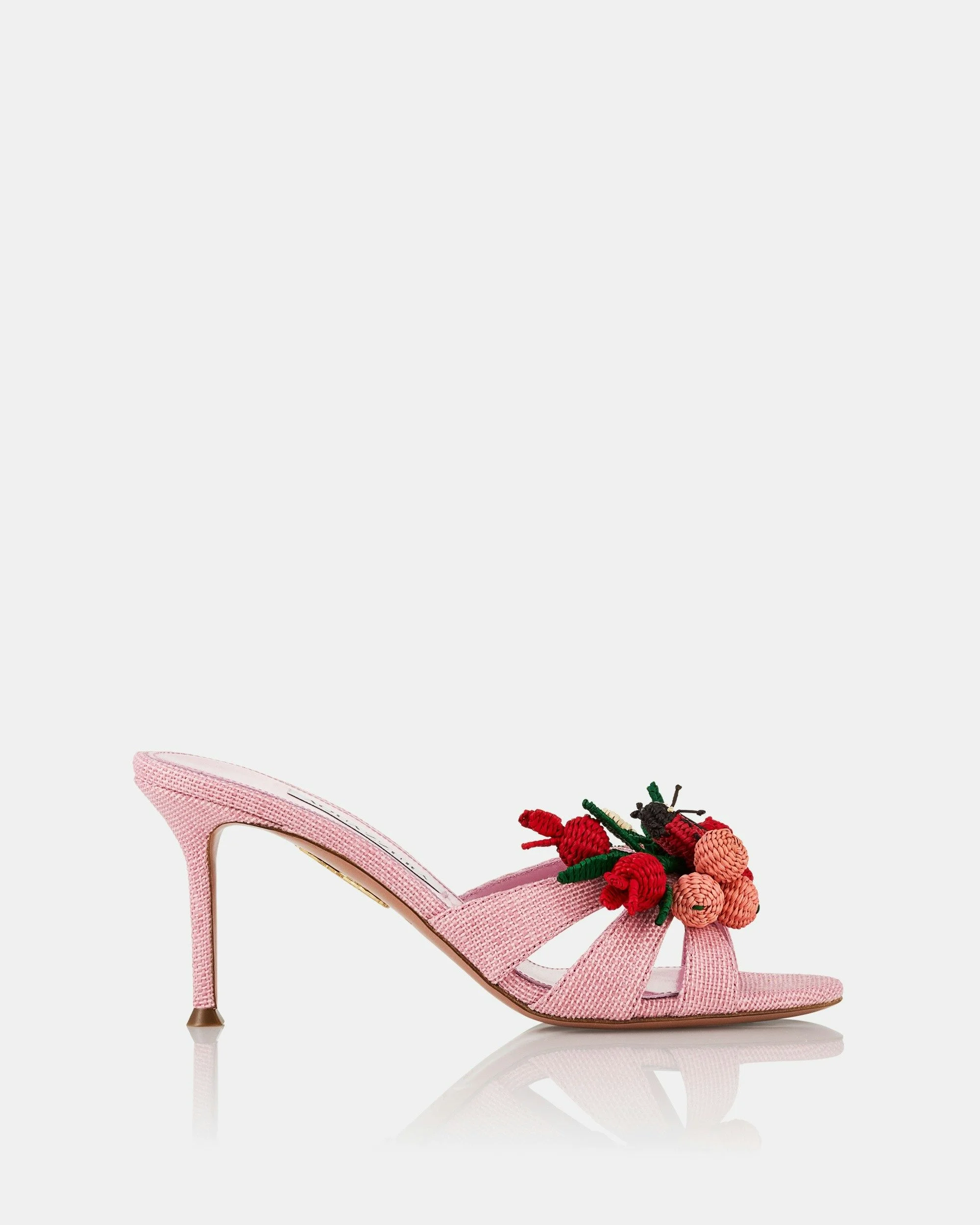These Botanica Mules unite the finesse of Italian leatherwork with handwoven raffia detailing crafted by Colombian artisans. Presented in a seasonal pink colourway, they have a cage-like shape that subtly frames the foot, and understated 75 mm heels. Slip-on shoes Mid heel Padded leather insole Signature logo detailing Product: BTCMIDM0-WVR-WMS Made in: ITALY