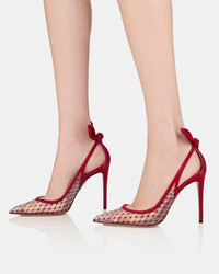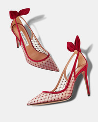 Designed to add sensual flair to any outfit, our Bow Tie Net Pumps are crafted from sheer mesh that reveals glimpses of skin, framed by supple suede trims for a classic finish. The rich burgundy shade is among the seasons most coveted colours, while the slim stiletto heels and Aquazzuras signature bows are the perfect finishing touch. Slip-on shoes Stiletto heel Padded leather insole Signature logo detailing Product: DNNHIGP0-FMS-CD3 Made in: Italy