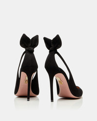 Our Bow Tie Pump is a natural trend-setter, the pair is expertly crafted in Italy from our coveted 'buttery' suede in rich black. The style features a flattering pointed toe, skin-bearing side cutouts at the heel and a flirty upward bow at the back for an extra touch of allure. FITS SLIGHTLY LARGE TO SIZE. Covered stiletto heel Leather lining Padded leather insole Leather sole with gold dipped metal Pineapple logo Product: DENHIGP0-SUE-000 Made in: Italy
