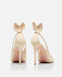 Make elegant strides this season in our Bow Tie Pump. Crafted in Italy from our signature buttery suede in chic nude, the style features a flattering pointed toe, skin-revealing side cutouts and a flirty bow at the back for an extra touch of panache. FITS SLIGHTLY LARGE TO SIZE. Covered stiletto heel Leather lining Padded leather insole Leather sole with gold dipped Pineapple logo Product: DENHIGP0-SUE-ECA Made in: Italy