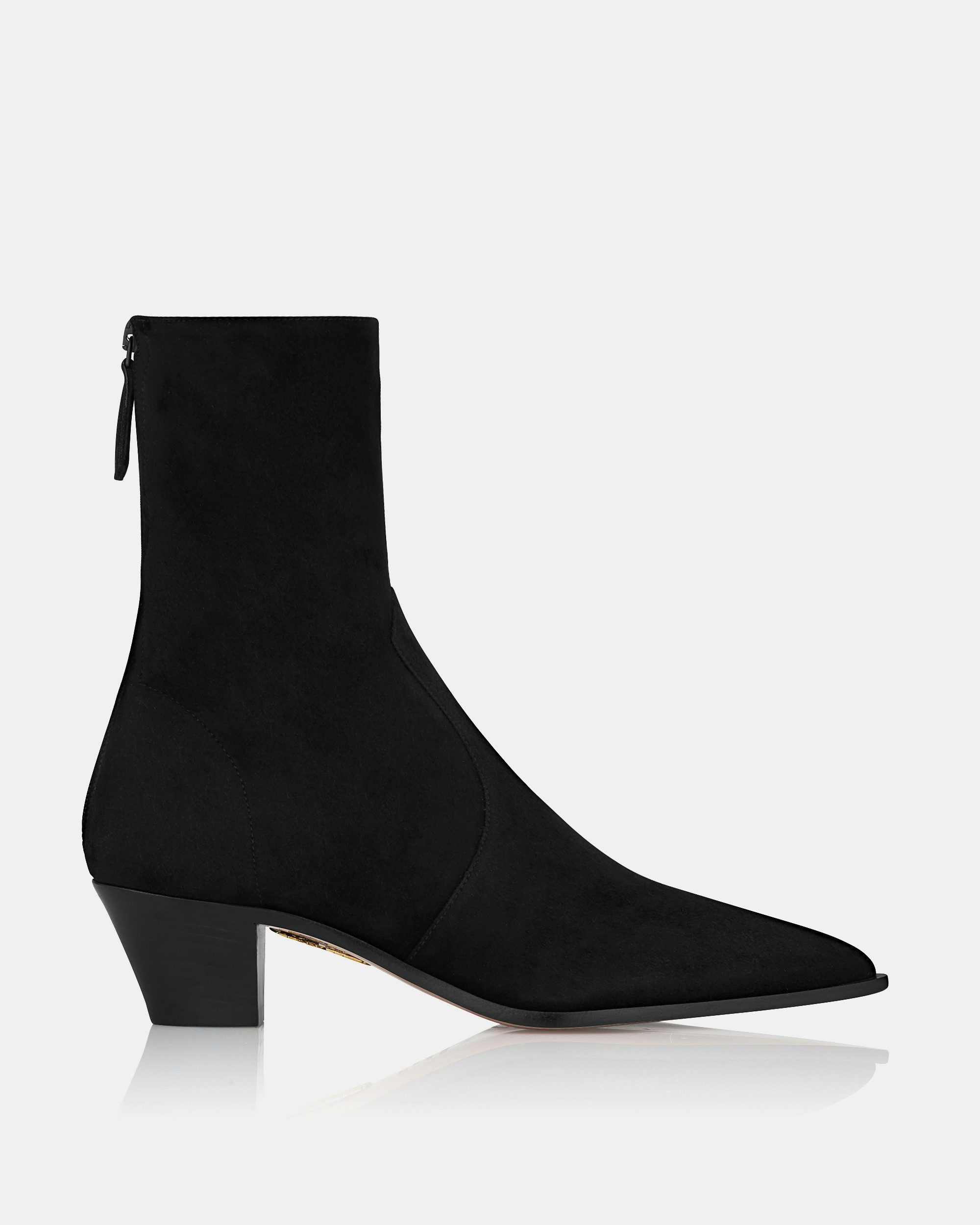 The epitome of urban Western style – our Brunswick Booties are equal parts comfortable and chic. Expertly crafted from black suede, they have sleek pointed toes, tapered mid heels and discreet back zippers for practicality. Wear yours with pretty floral dresses or add denim and a leather jacket to the mix. Back zipper Slanted heel Padded leather insole Signature logo detailing Product: BNWMIDB1-SUE-000 Made in: Italy