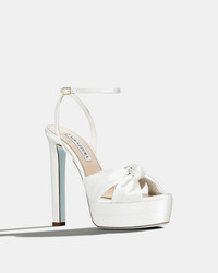 Contemporary elegance. Our Cupid Plateau Sandal combines a sturdy plateau and sky-high heel with delicate ankle straps and a refined knot motif that decorates the tip of the foot. This open-toe style is entirely Made in Italy from silky white satin. Adjustable buckle closure Block heel Padded leather insole Signature logo detailing Product: CPDHIGBR-SAT-FFF Made in: Italy