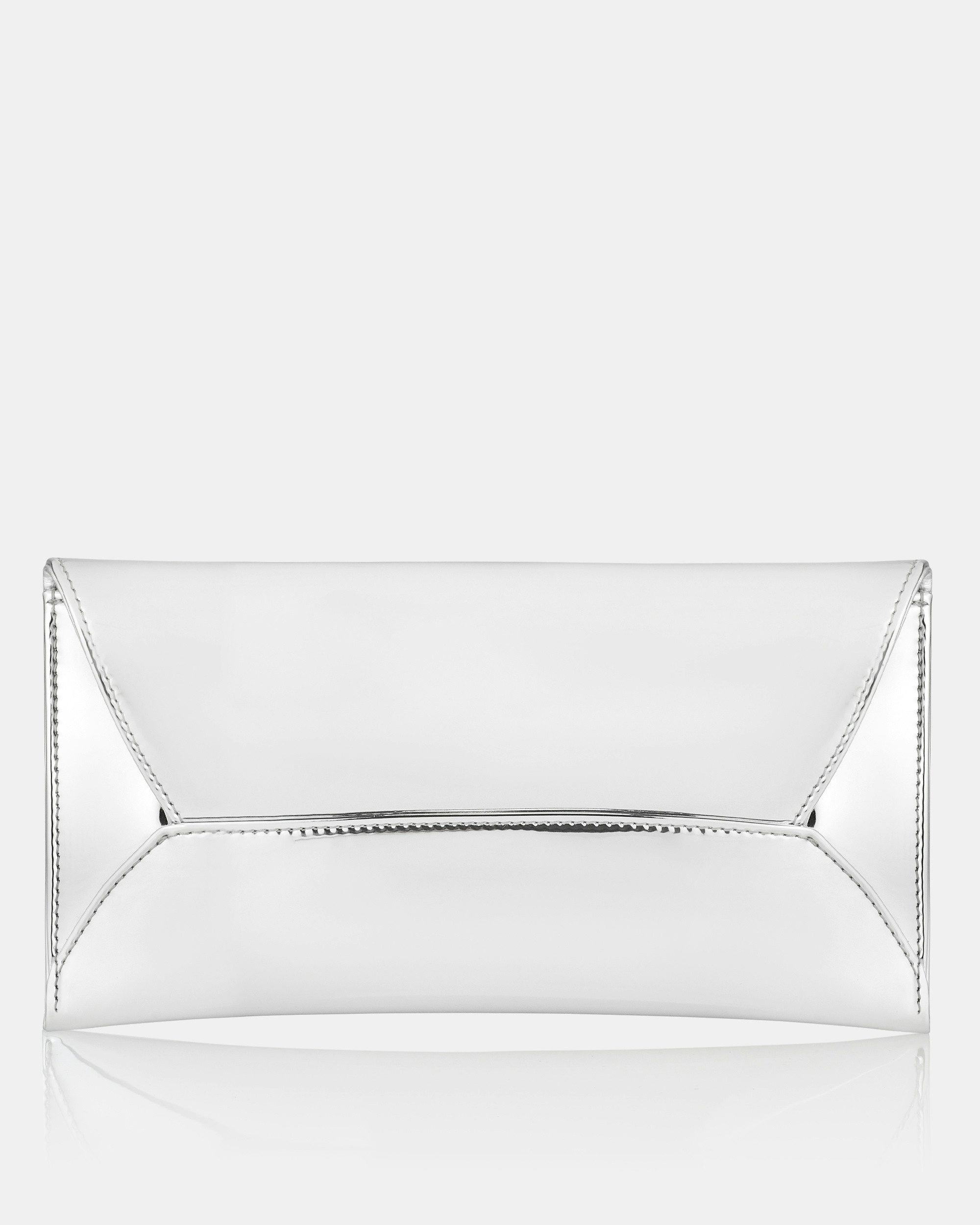 Covetable and contemporary, our Envelope Clutch returns for the season in metallic silver leather with a lustrous mirrored finish. A tonal logo plaque adds a signature touch, making this statement piece perfect for evening affairs — from elegant dinners to nights that end at dawn. Tuck-in flap closure Signature logo detailing Aquamarine dust bag Product: ENVCLUC0-SSY-SVP Dimensions: 26L x 13H x 2D cm Made in: ITALY