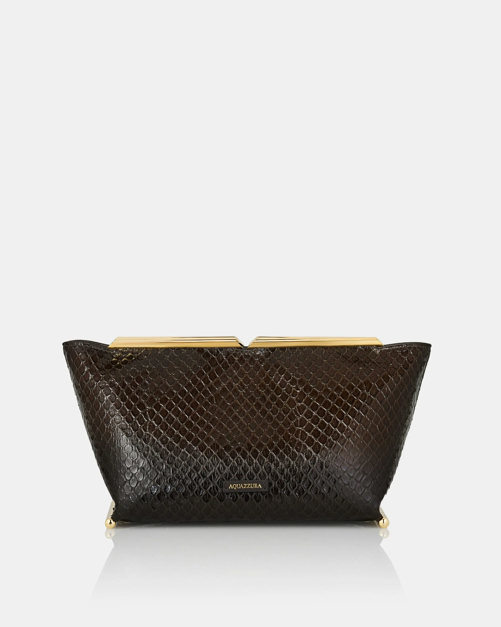 From the streamlined silhouette to the sculptural hardware, the Galerie Clutch is the new cult bag to have on your radar. It's crafted in Italy from brown python-effect leather with light gold-tone metal details and a matching chain strap. From day to night – the styling possibilities are endless. Magnetic closure Detachable chain strap Signature logo detailing Aquamarine dust bag Product: GLRCLUC0-PYH-ESG Made in: ITALY