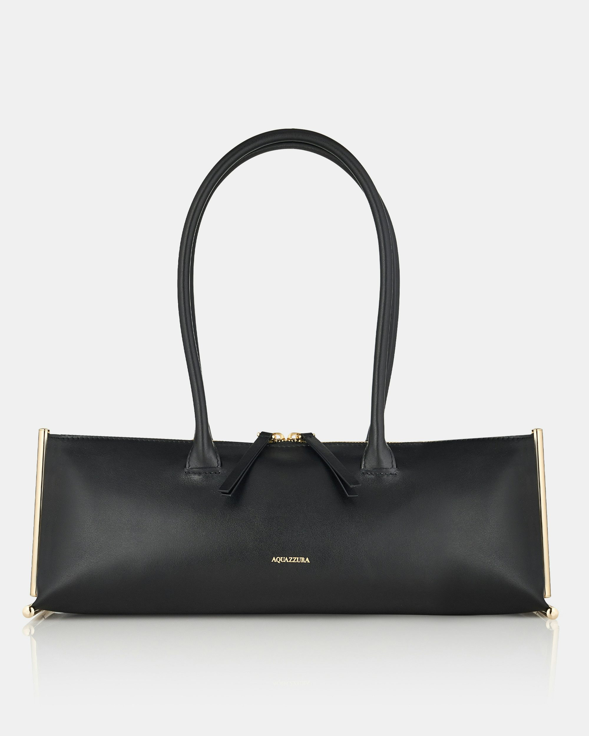 With its architectural lines, elongated profile, and exquisite details that stand the test of time, the Galerie Shoulder Bag is our latest style obsession. It's made in Italy from black leather and detailed with brilliant gold-tone hardware for a distinct look. The tubular straps are long enough to sling comfortably over your arm. Two-way zip fastening Top handles Signature logo detailing Aquamarine dust bag Product: GLRSHBS0-CAL-BLD Made in: ITALY