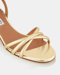 An ideal combination of comfort and glamour: these Heatwave Sandals are crafted from mirrored-effect gold leather with a rich, dimensional finish that catches the light beautifully. The minimalist, strappy silhouette is poised on 35 mm block heels. Adjustable buckle closure Low heel Padded leather insole Signature logo detailing Product: HTWMIDS0-SSY-SOG Made in: ITALY