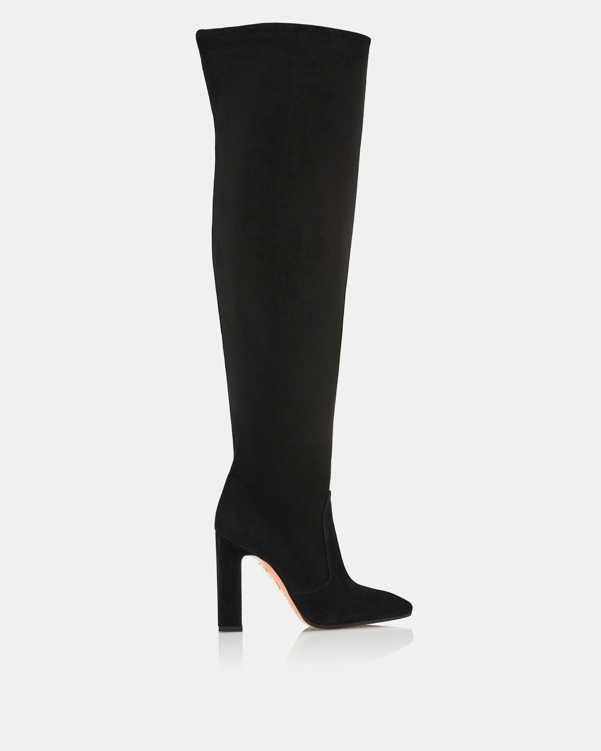 A knee-high boot is a footwear classic to last for seasons to come. Our Joplin Boot is Italian-made from our signature buttery suede in rich black and finished to a sleek, feminine toe. The timeless pair is balanced on a block high heel. We like them with slim jeans tucked in or under a floaty dress. Block high heel Knee-length Pointy toe Leather insole with 'Aquazzura' label Product: JPLHIGB0-SUE-000 Made in: Italy