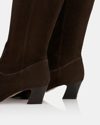 Ultra-desirable and ultra-wearable – our Nomad Over-The-Knee Boots celebrate the re-emergence of the boho trend with their bold thigh-high silhouette and Western-inspired detailing. They're crafted from espresso-brown suede and leather with elongated toes and comfortably slanted block heels. Pull on Low heel Padded leather insole Signature logo detailing Product: NMAMIDB0-SUE-ESP Made in: ITALY