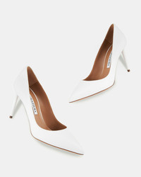 Step out in classic style in our Purist Pump. Designed in Italy from supple nappa in fresh white, the classic silhouette is shaped to a pointed toe and is balanced on a mid heel for all-day comfort.Work yours with everything from cropped jeans to a cocktail dress. Covered stiletto mid heel Pointy toe Padded leather insole Leather insole with Aquazzura label Product: PURMIDP1-NAP-FFF Made in: Italy