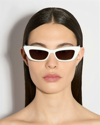 The classic cat-eye with a contemporary twist – these Riviera sunglasses frame your face beautifully with their elongated upswept profile and softly-sculpted edges. Theyre crafted in Italy, mixing translucent and white acetate, and embellished with Aquazzuras sparkling silver-toned logo. Zoom in to appreciate the textured metal core encased within the temples, and shield your eyes behind the brown-to-silver-mirrored lenses. Upswept cat-eye shape Acetate frame Brown lenses with silver mirror effect UV protection Signature logo detailing Silver branded case and cleaning cloth Lens width: 5.2cm Bridge width: 1.6cm Temple length: 14cm Made in Italy Product: RVIEYES0-ATE-WCY Made in: Italy