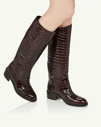 Combining a glossy finish with bold crocodile-print leather, our brown Sellier Boot Flats are a lavish addition to your shoe selection. They each feature a round toe, a wide-cut shaft, and a 40 mm heel. Notice the delicate metal chain around the sole that lends them an unexpected touch of luxury. Pull on Round toe Mid heel Padded leather insole Signature logo detailing Product: SELFLAB0-CCX-CCO Made in: Italy