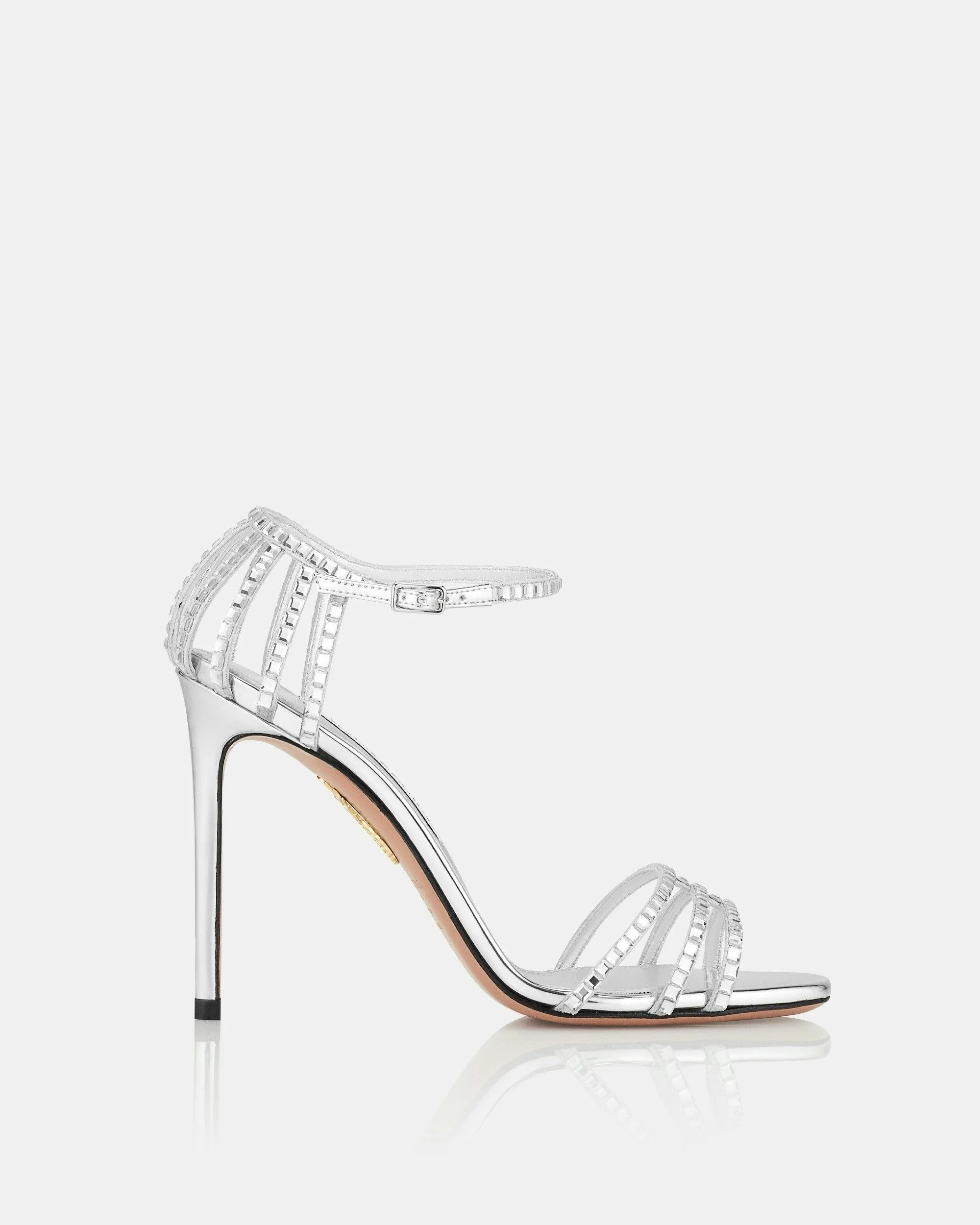 As the summer party season approaches, pair your favourite dresses with these Sensation Crystal Sandals. Set on 105 mm stiletto heels, they're crafted in Italy from mirror-effect silver leather and enriched with tonal embellishments, creating a stunning interplay of texture and shine. Adjustable buckle closure Stiletto heel Crystal embellishments Padded leather insole Signature logo detailing Product: SSYHIGS0-SYA-CCC Made in: ITALY