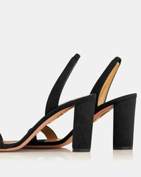Our coveted So Nude silhouette is reimagined on a block heel. Italian-crafted from velvety suede in rich black, the minimal design is fashioned with a slender strap that wraps the toes and a comfortable slingback that keeps the foot in place. The pair is finished on a mid block heel to take you from office to evening, effortlessly. Covered block mid heel Open toe Slingback strap Leather insole with 'Aquazzura' label Product: SNBMIDS0-SUE-000 Made in: Italy