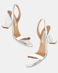 Glamorous, modern and refined: set your sights on our So Nude Block Sandals, destined to transform your look in an instant. Crafted in Italy, they feature a mirrored leather-effect finish in silver, an 85 mm block heel, and a foot-framing slingback strap. Buy now and cherish forever. Slingback strap Open toe toe Mid heel Padded leather insole Signature logo detailing Product: SNBMIDS0-SSY-CCC Made in: Italy