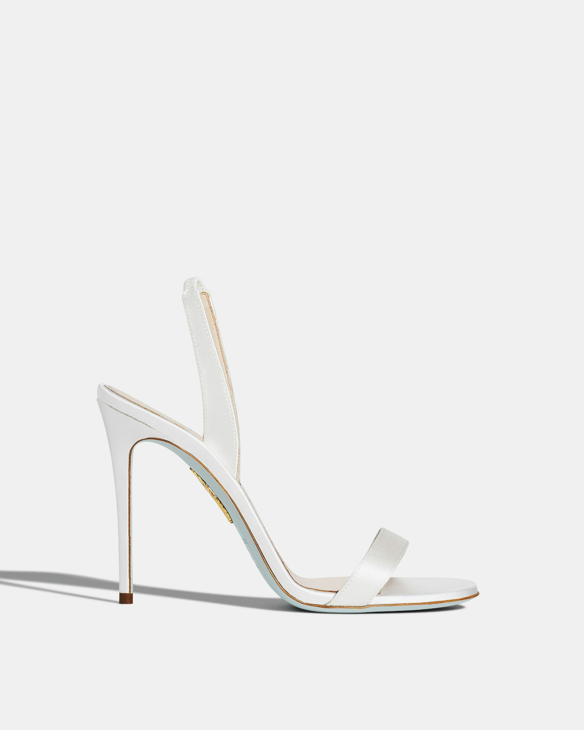 Our So Nude Sandal showcases a barely-there, elegant two strap silhouette, made from smooth white satin. The style sits upon a matching, leg-lengthening stiletto heel. Slingback strap Stiletto heel Padded leather insole Iconic light blue outsole Signature logo detailing Product: SNUHIGBR-SAT-FFF Made in: Italy