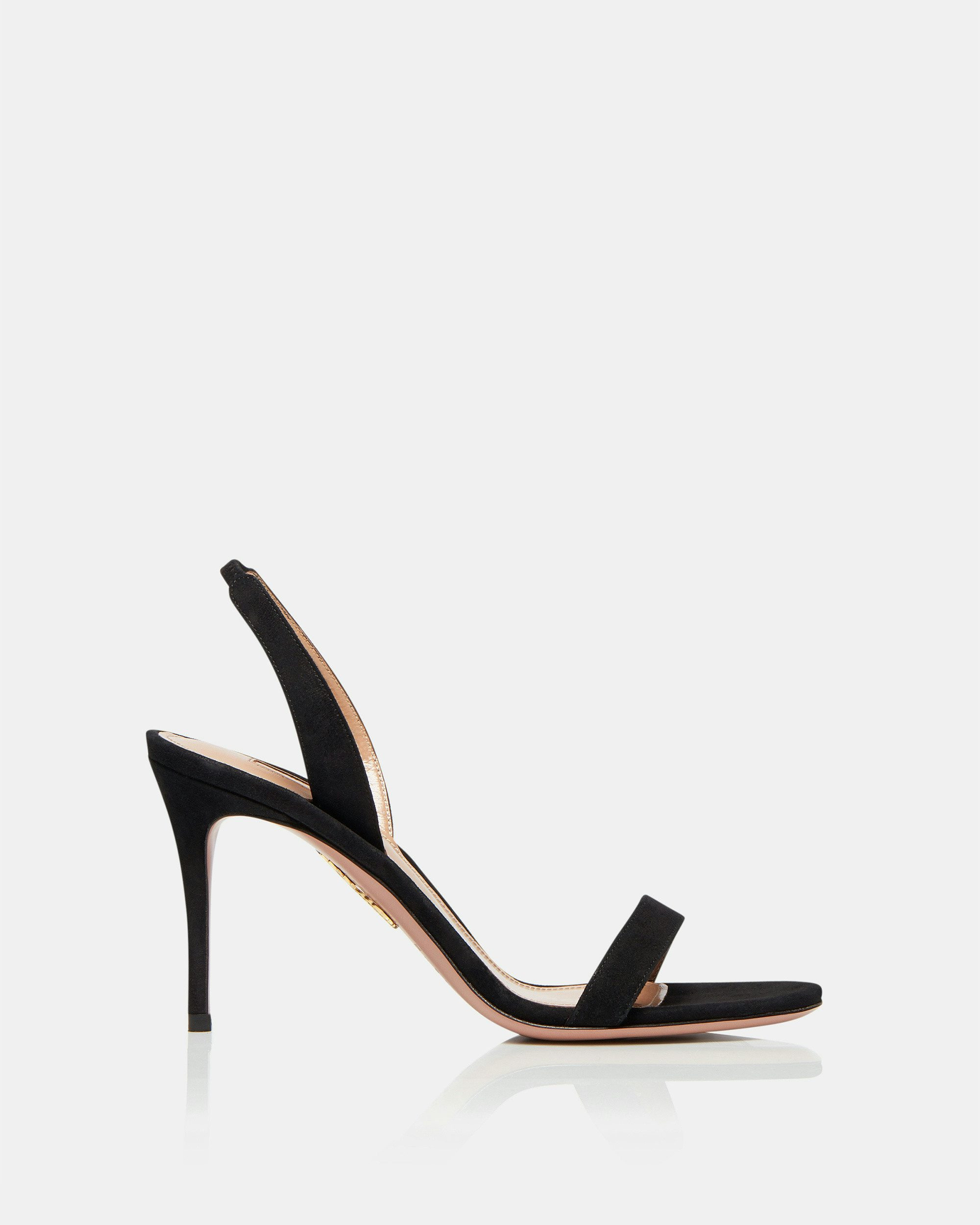 Our So Nude Sandal adds an alluring addition to your wardrobe. This simple, yet elegant style is made from buttery suede in rich black. Pair sits upon a comfortable mid heel for all day comfort. Works with everything from denim to dresses alike. Covered stiletto mid heel Leather lining Leather insole with 'Aquazzura Firenze' stamped in gold Leather sole with embossed Pineapple logo' Product: SNUMIDS0-SUE-000 Made in: Italy