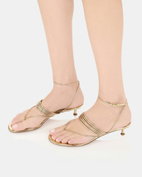 These Solare Sandals are crafted from mirror-effect gold leather that lends instant attitude to the minimalist thong silhouette. They fasten with adjustable buckles and rest on 30 mm kitten heels that look just as chic styled with dresses or denim. Adjustable buckle closure Low heel Padded leather insole Signature logo detailing Product: SARMIDS0-SSY-SOG Made in: ITALY