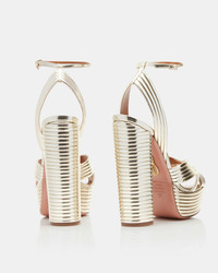 Our Sundance Plateau creates a glamorous effect with a multitude of bands surrounding the open-toe silhouette. Italian-crafted from laminated leather in gleaming light gold, the pair features slim straps at the toes and around the ankle. A generous platform sole allows for extra lift. Adjustable buckle closure Covered chunky heel and plateau Leather lining Padded leather insole Leather sole with gold dipped metal Pineapple logo Product: SUDHIGS0-LAM-FD5 Made in: Italy