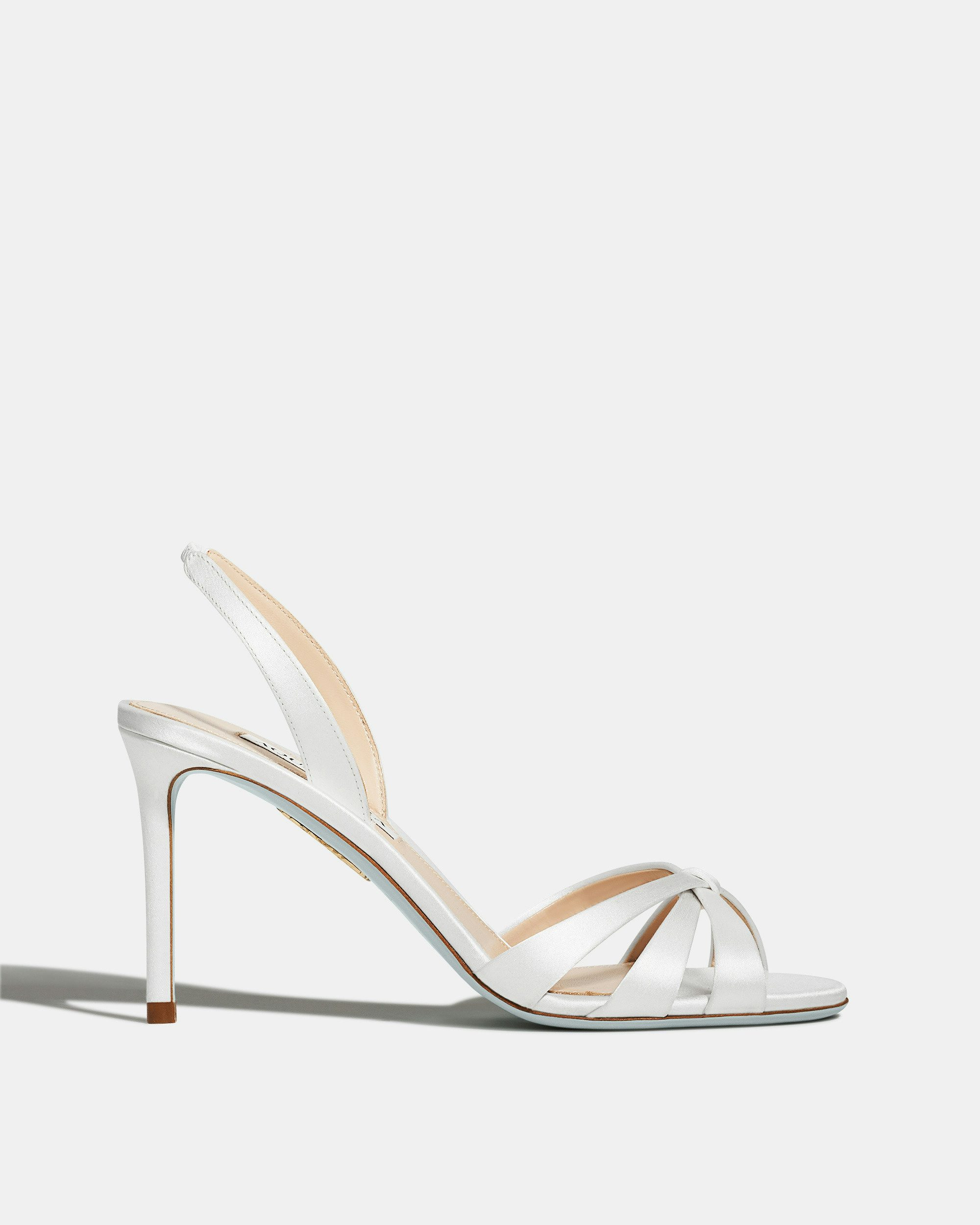 A special choice for the bride-to-be, our Tati Sandal is made in Italy from lustrous white satin. The elasticated slingback straps provide a secure fit, while the 85mm pin-thin stiletto heels strike the perfect balance between comfort and height. Slingback strap Padded leather insole Iconic light blue outsole Signature logo detailing Product: TTIMIDBR-SAT-FFF Made in: Italy