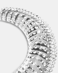 Impactful and intriguing, this Temptation Crystal Necklace instantly elevates any look. Cast in Italy from palladium-toned brass and translucent resin, it features a sculptural, curved silhouette adorned with glistening gemstones that gently illuminate your face. Adjustable clasp with logo tag Crystals Product: TCSNEKN0-RSB-TCP Made in: ITALY