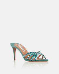 The Tequila Mule returns in a fresh, seasonal mood, crafted from teal green suede and featuring scalloped straps embellished with radiant tonal crystals. This minimal yet glamorous style sits atop a comfortable mid heel, effortlessly bridging the gap between evening elegance and after-dark allure. Perfect for making an entrance – and staying out late. Covered stiletto mid heel Open toe Slip on Signature logo detailing Product: TQLMIDM0-SUE-LGE Made in: ITALY