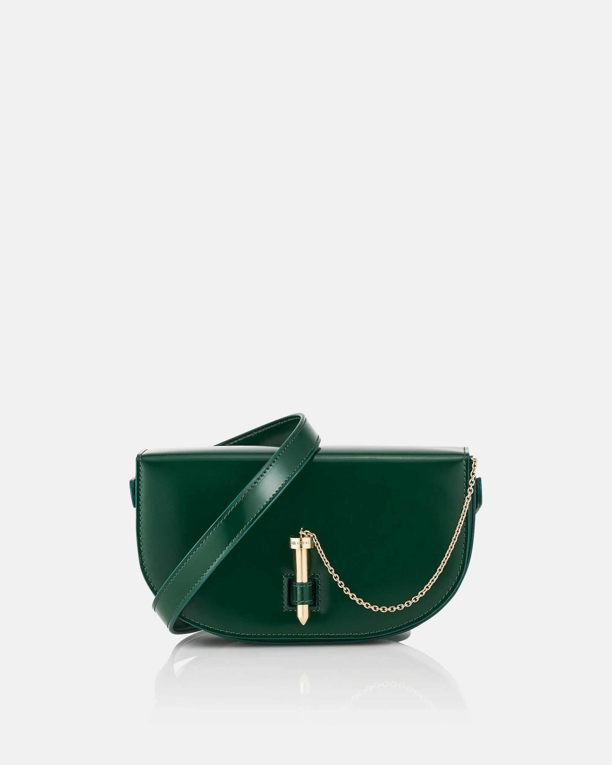 A fresh take on a timeless silhouette – the Tribeca Crossbody bag instantly catches attention with Aquazzuras signature hardware detailing. The rounded shape, reminiscent of vintage designs, is crafted in Italy from brushed calf leather, here in Dark Malachite green. The long shoulder strap provides endless styling options. Front flap Long shoulder strap Signature logo detailing Aquamarine dust bag Product: TRCCRBR0-SPZ-DLM Made in: Italy