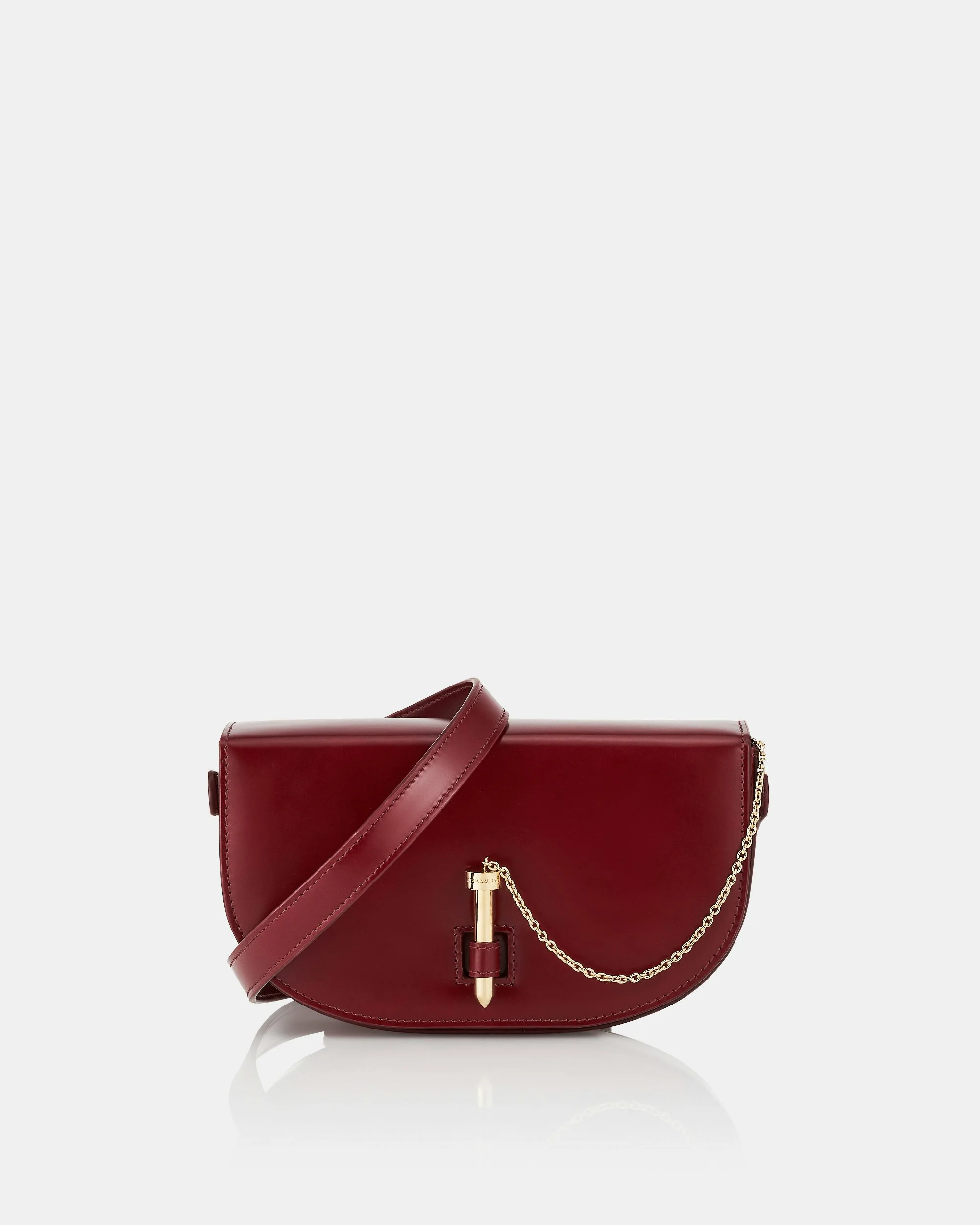 A fresh take on a timeless silhouette – the Tribeca Crossbody bag instantly catches attention with Aquazzuras signature hardware detailing The rounded shape, reminiscent of vintage designs, is crafted in Italy from brushed calf leather, here in spice red. The long shoulder strap provides endless styling options. Front flap Long shoulder strap Signature logo detailing Aquamarine dust bag Product: TRCCRBR0-SPZ-SRK Made in: Italy