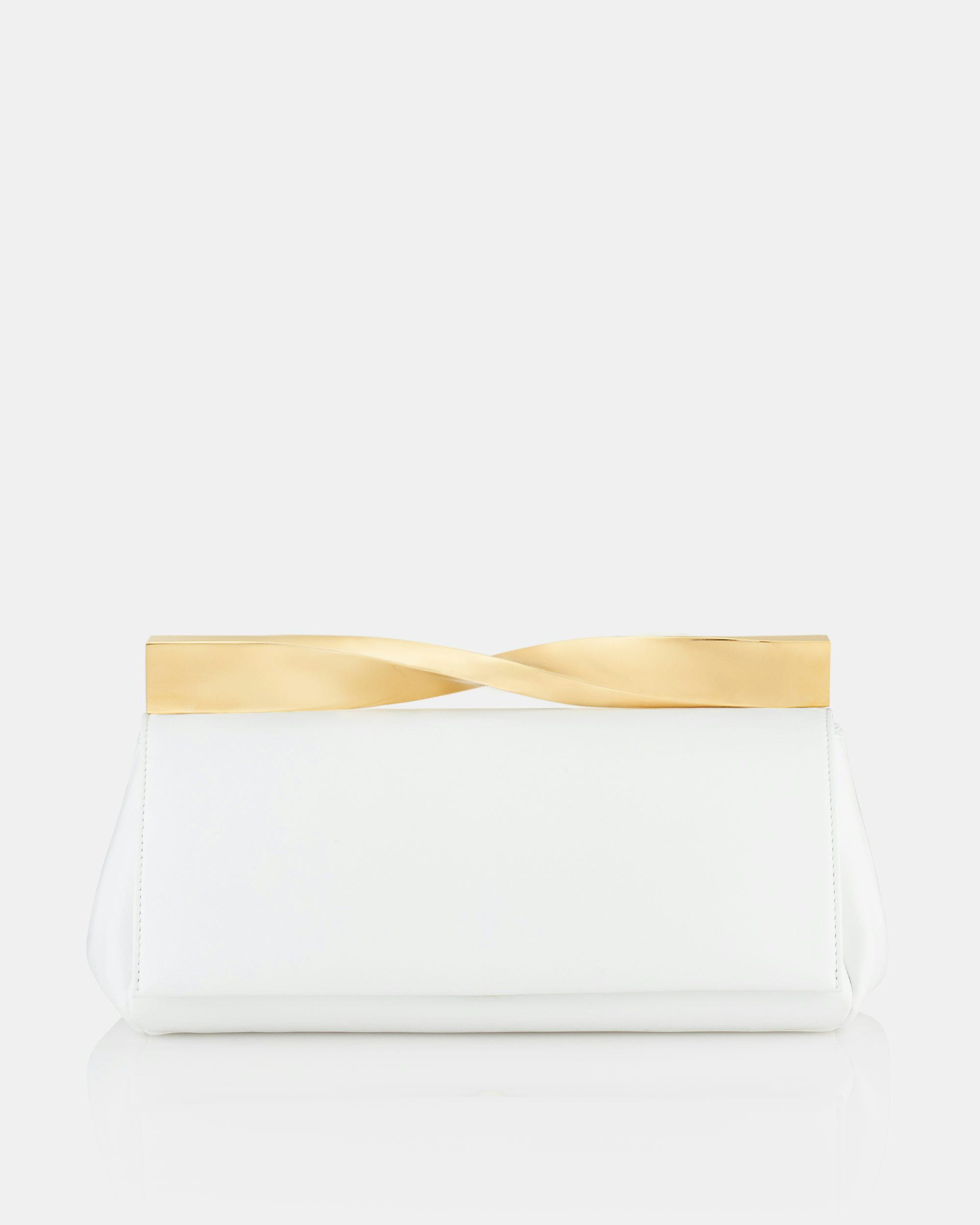 Luxurious fabrication makes the essential profile of the Twist Clutch the epitome of daily elegance. Named after the twisted design of the sculptural metal clasp – and a matching heel of the collection – this handbag is crafted from nappa that's soft and supple. The combination of off-white leather and gold-tone hardware makes this stand-out design a fresh addition to your daily edit. Nappa 1 Internal zipped pocket Light gold-tone hardware Aquamarine lining with gold-tone Pineapple logo Internal compartment with zipped pocket Aquamarine dust bag Detachable strap: 90cm Product: TWICLUC0-NAP-OWL Dimensions: 27L x 13W x 13H cm Made in: Italy