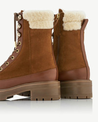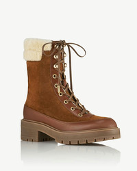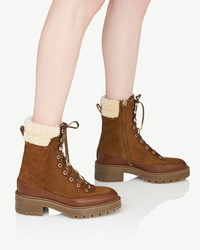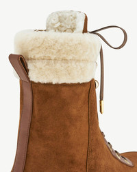 Chic enough to wear to the office, but also practical enough to handle icy or snowy terrain – our Very Cortina Shearling Booties are a winter must-have. They're crafted from 'Chestnut' leather and suede and finished with fuzzy shearling for extra cosiness. The feminine lace-up profile is set on chunky rubber lug soles. Lace-up front Round toe Flat heel Padded leather insole Signature logo detailing Product: VCSFLAB0-SBS-ECH Made in: Italy