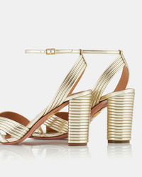 The shortcut to mastering the season's metallic trend – our Very Sundance Sandals are crafted from light-gold leather with a unique, dynamic texture that enhances the lustrous sheen. The elegant open-toe silhouette features side cutouts, dainty ankle straps and 85 mm block heels that offer height and stability. The perfect counterpart to flowy evening dresses. Adjustable buckle closure Block heel Padded leather insole Signature logo detailing Product: VSDMIDS0-LAM-FD5 Made in: Italy
