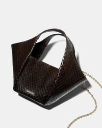 The Voltaire Mini Tote feels powerful yet feminine with its slouchy geometric shape and deep ‘Espresso’ brown shade. It's crafted in Italy from smooth and python-effect leather with a gleaming metal chain strap for extra styling options. A standout plus-one for your daytime and after-dark looks. Magnetic closure Top handle Detachable chain strap Signature logo detailing Aquamarine dust bag Product: VTRTOTT1-PYH-ESG Made in: ITALY
