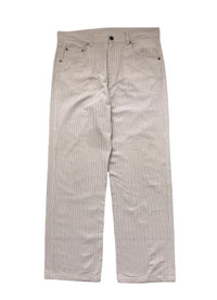 SIZE : 48 MADE IN ITALY WAIST : 34 INCHES LENGTH : 39.5 INCHES INSEAM : 28 INCHES FRONT RISE : 12.5 INCHES THIGH : 26 INCHES LEG OPENING : 18 INCHES
