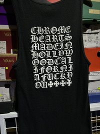 Please Read The Description: Selling Used item, Pleas donโt expect the item looks brand new. Unless if it mention on details. ๐จSTORAGE IN A NON SMOKING AREA CLOSET๐จ ๐ซ Please check the manual measurements rtaken on a flat surface ๐ Item : Chrome Hearts Tank Top ๐ค ๐ MEASUREMENT ๐ ๐ โSIZE TAG XL FIT M/L (Please Mind The Material is stretch when wearing. canโt be measured on flat surface) Please Refer to pictures for measurements details ๐ Condition = USED ITEM, IN GOOD CONDITION PLEASE REFER TO PICTURE FOR MORE DETAIL, SERIOUS BUYER ONLY ๐๐ป๐ ๐ต PAYMENT ๐ต - Accept Paypal payment only, will right parcel as โGiftโ and mark the value Low for custom declarations. ๐ซ SHIPPING METHOD ๐ซ -Allow 2-3Day for shipping processed -Shipment by Fedex Express International -4-6 Days Arrive Thank you for shopping with us.