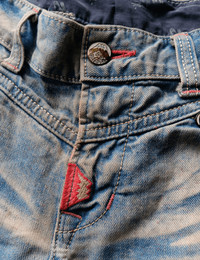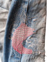 Edwin japan pabric koi embroidered mud wash jeans