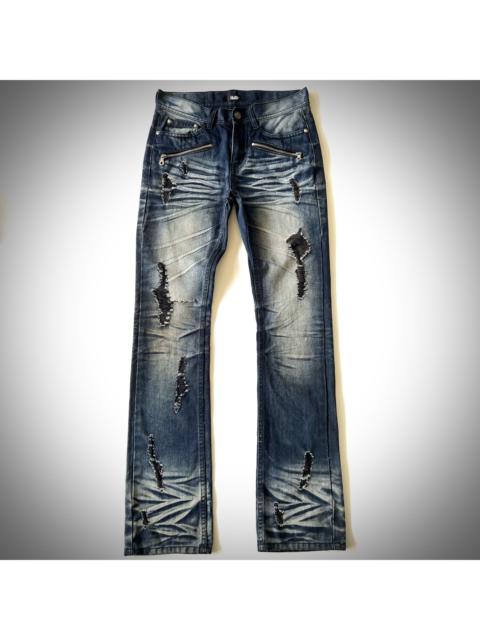 Ozz-First Pinball embroidery patchs distressed flared denim