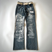 🔥If You Like This Pieces, Grab It Now!. It May Not Easy To Find It Again. Please Buy With Confidence. We Had More Than 114 Sold Items At Grailed With Perfect Feedback!🔥 Bernings-Sho Zipper Detail Graphic Jeans ⚠️ Actual size measured by hand on the floor (approximately) Size on tag : 76 📏 Units are inches 📏 Waist Circular measurement = 29.5“~30” Thigh = 10.5” Front rise = 10.5” Length (Inseam) = 33” Length (Outseam) = 42.5” Leg opening = 9” 🚩Condition 7.9/10 Very Good , Used 🚩Material Jean ———— ⚠️ Always read the details before purchasing. * Offer me your best price * There may be some stains, scratches, wrinkles, it hasn’t been cleaned yet. If it passes, I will inform you of the details. (I want someone who can accept the condition.😊) * This is used clothing usually got stretch or little defect .. please don’t expected it to be like new * Shot in natural light Colors may vary slightly due to weather conditions. ⚠️Manual measurement⚠️ *Waist measurement will be measured in a circle *Size: Please refer to the actual measurements given and compare with your most suitable clothing.. Items cannot be refunded or exchanged after purchase. All sales are final. * I apologize for using English which may not be correct. 🙏🏻😊 💸PAYMENT 💸 -Payment method via PayPal, and Stripe. Thank you for visiting our store. Happy shopping!🙏🏻🙏🏻😊##berningssho #kmrii #archive #archivefashion #undercover #2000s #y2k #designer #designerfashion #grailed #vkei #grunge #undercover #14thaddiction #ifsixwasnine #lgb #beautybeast