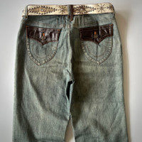 🔥If You Like This Pieces, Grab It Now!. It May Not Easy To Find It Again. Please Buy With Confidence. We Had More Than 114 Sold Items At Grailed With Perfect Feedback!🔥 Eterno Dellezza Spiral Flared Jeans ⚠️ Actual size measured by hand on the floor (approximately) Size on tag : 36 📏 Units are inches 📏 Waist Circular measurement = 29” Hip. = 35” Thigh = 9“ Front rise = 10” Length (Inseam) = 30” Length (Outseam) = 40” Leg opening = 10” 🚩Condition 7.9/10 Very Good , Used 🚩 Flaws: 2 holes 🚩Material Cotton 95% Polyurethane 5% Polyester PU fabric bag ———— ⚠️ Always read the details before purchasing. * Offer me your best price * There may be some stains, scratches, wrinkles, it hasn’t been cleaned yet. If it passes, I will inform you of the details. (I want someone who can accept the condition.😊) * This is used clothing usually got stretch or little defect .. please don’t expected it to be like new * Shot in natural light Colors may vary slightly due to weather conditions. ⚠️Manual measurement⚠️ *Waist measurement will be measured in a circle *Size: Please refer to the actual measurements given and compare with your most suitable clothing.. Items cannot be refunded or exchanged after purchase. All sales are final. * I apologize for using English which may not be correct. 🙏🏻😊 💸PAYMENT 💸 -Payment method via PayPal, and Stripe. Thank you for visiting our store. Happy shopping!🙏🏻🙏🏻😊#ifsixwasnin #tornadomart #grunge #archive #archivefashion #vkei #lgb #designer #goa #yasuyukiishii #grailed #undercover #2000s #kmrii #japanesebrand ##japanesedesigner
