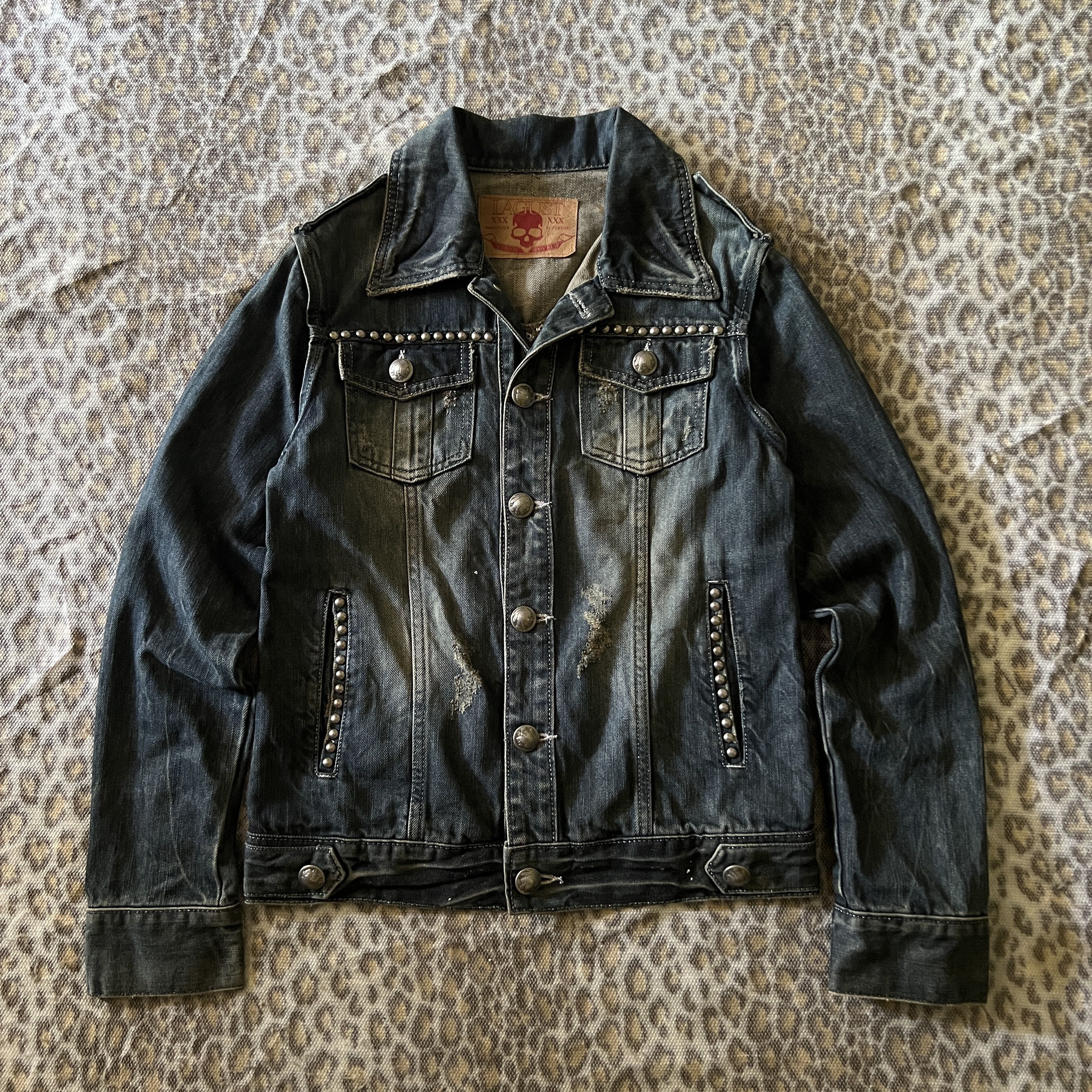 ⚠️Actual size measured by hand on the floor (approximately) Size on tag : 2 📏 Units are inches 📏 Chest[Armpit to armpit] = 17.5” Shoulder. = 15.5” Length = 24” Long sleeves = 24.5” 🚩Condition 8/10 Very Good , Used 🚩 This is a denim jacket from the Japanese brand Lagust from the 2000s that you shouldn't miss. This jacket features a detachable sleeve design that becomes a 2-in-1 vest that helps you achieve the look you want. Metal buttons embossed with the Indian Head pattern show the unique attention to detail. Metal studs line the edges of the pockets and the back, adding a raw, cool and fierce look that will make you stand out in every eye. And using the mud wash technique, it gives a vintage touch and natural texture that looks like it has been worn for a long time and stands out. Silver thread stitching adds a unique charm. 🚩 Material Denim ——— ⚠️ Always read the details before purchasing. * Offer me your best price * There may be some stains, scratches, wrinkles, it hasn’t been cleaned yet. If it passes, I will inform you of the details. (I want someone who can accept the condition.😊) * This is used clothing usually got stretch or little defect .. please don’t expected it to be like new * Shot in natural light Colors may vary slightly due to weather conditions. ⚠️Manual measurement⚠️ *Waist measurement will be measured in a circle *Size: Please refer to the actual measurements given and compare with your most suitable clothing.. Items cannot be refunded or exchanged after purchase. All sales are final. * I apologize for using English which may not be correct. 🙏🏻😊 💸PAYMENT 💸 - Payment via PayPal only- Thank you for visiting our store. Happy shopping!🙏🏻🙏🏻😊 #y2k #OOTD #archive #archivefashion #vkei #grunge #ifsixwasnine #lgb #legrandebleu #designer #japanesebrand #japanesedesigner #2000sfashion
