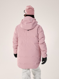 Warm, waterproof mid-thigh jacket for resort skiing and snowboarding. Dialed in for the unique demands of on-area skiing and snowboarding – including frigid lift rides – our warmest women’s resort jacket has goose down insulation, an extended mid-thigh length, and a PFAS-free GORE-TEX ePE fabric to seal out wind and snow. The lines are clean, the construction maximizes warmth, and features are extensive. An insulated adjustable hood fits over your helmet, multiple pockets offer storage, and a down-insulated collar wraps the neck for next-level warmth. This product is free of intentionally added PFAS. The new ePE membrane technology is lighter and thinner, but just as strong and durable as the materials we used before. You may notice the face fabric “wetting out” slightly faster in products with ePE membranes, but rest assured this does not affect the waterproofing of the membrane itself. If you notice the fabric wetting out faster than you’d like, simply wash the jacket and dry it to remove the oil contamination and bring the DWR back to its full power. Full Product Features Technical features - Waterproof - Windproof - Breathable - Durable Collar configuration - Soft, warm integrated down-insulated collar wraps the neck and seals out drafts Construction - Down Composite Mapping™ strategically places synthetic insulation in areas where moisture may buildup and down in areas for maximum warmth - Stitch-free bonded baffle construction adds durability, improves GORE-TEX integrity - 750 fill power European grey goose down provides lightweight, efficient warmth and is RDS (Responsible Down Standard) certified - PFAS-free GORE-TEX ePE with a recycled face delivers complete waterproof, windproof, breathable protection - Recycled GORE C-KNIT™ backer is quiet, soft next-to-skin, and highly breathable Design & Fit - Regular fit provides freedom of movement - Mid thigh length - Garment Centre Back Length: Size S is 32"/82cm - Varies by size Fabric treatment - FC0 DWR (Durable Water Repellent) finish repels moisture and is PFAS-free Hem configuration - Longer back hem provides coverage Hood configuration - Warm, comfortable PrimaLoft® Silver insulated hood provides full coverage, adjusts for a fine-tuned fit, fits over a helmet, and can be removed when not in use Patterning - Snowsport-specific articulated patterning for mobility and comfort Pocket configuration - Two hand pockets with zippers - Internal zippered pocket - One internal dump pocket - Sleeve pocket for RFID pass Snowsport features - Detachable powder skirt - RECCO® reflector aids search and rescue in emergency situations Sustainability - Shell - bluesign® approved material, dope dyed backer, recycled content - RDS (Responsible Down Standard) - 100% of our down is certified to the RDS by IDFL (No.TE-99950273) - Feather - This product contains feather not exceeding that allowable by law - PFAS (Per- and polyfluoroalkyl substances) Compliant Zippers & Fly configuration - Pit zippers with PowderGuard™ mesh backing, for easy venting without snow entry Materials - Down Insulation: 750 fill European grey goose down - 100% Grey Goose Down (minimum 90% down) - Synthetic Insulation: Coreloft™ Continuous, 91.5gsm, FC0 DWR - 100% Polyester - Lining: 20dx20d nylon ripstop w/DWR, 45gsm - 100% Nylon - Body: 80d 3L GORE-TEX ePE with C-KNIT™ backer, plain weave recycled nylon, FC0 DWR - 100% Nylon with ePE and PU Membrane - Origin of fabric: CHINA - Origin of dyeing: CHINA - May release plastic microfibres into the environment when washing