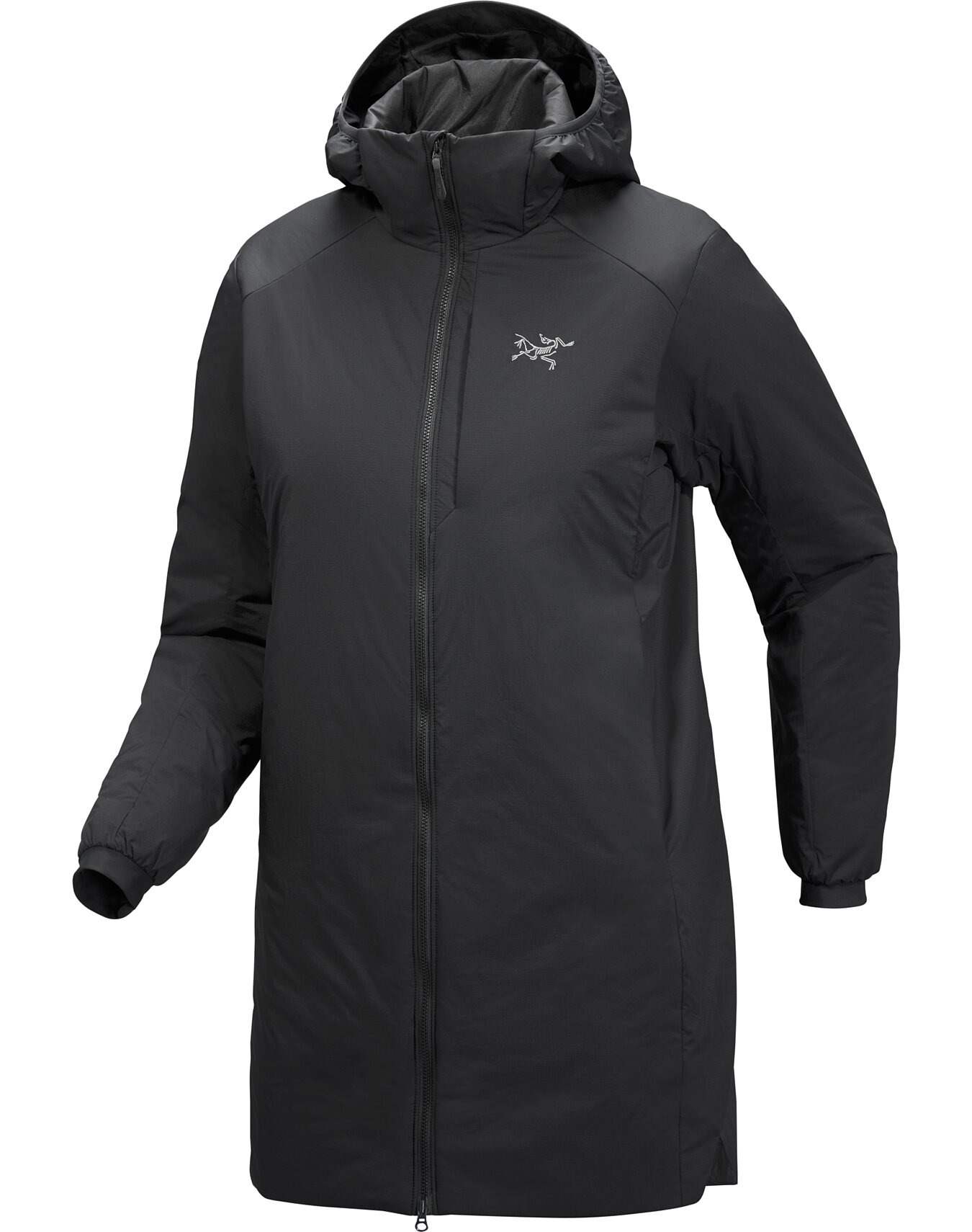 Longest Atom jacket for breathable insulation in cold conditions. Designed for hikers, our iconic Atom Jacket has also been a longtime favourite of climbers, skiers, and snowboarders for breathable warmth in all kinds of mountain conditions. This long version gives you the same reliable Coreloft insulation (warmer through the body and lighter under the arms) that won't pack out or lose heat when it's wet—in a bum-covering length. It stands alone for a low-output day hike, slides easily under our long Beta shell for a clutch layering system that'll keep out any storm. What's been updated: Updated with additional recycled Coreloft™ insulation (from 60gsm to 80gsm) for more warmth, an added 2” of length for ease of layering with a hardshell, and a looser fit (including adding 4cm to the hip) to improve mobility. Full Product Features Technical features - Moisture-resistant outer face fabric - Breathable - Lightweight - Wind resistant Construction - Main body insulation is polyester Coreloft™ and is breathable, is lightweight, and resists packing out - Lightweight polyester Coreloft™ insulation under arms for temperature regulation - Nylon lining slides easily over layers Cuff & Sleeves configuration - Stretchy cuffs - Internal cuff gaiters to secure sleeves and seal out drafts Design & Fit - Regular fit provides freedom of movement - Mid thigh length - Garment Centre Back Length: Size S is 34"/87cm - Varies by size Fabric treatment - DWR (Durable Water Repellent) finish repels moisture and is PFAS-free Hem configuration - Drop back hem - Longer back hem provides coverage Hood configuration - Adjustable hood drawcords - Insulated, adjustable hood Pocket configuration - Chest pocket - Two hand pockets Sustainability - Insulation - bluesign® approved material, recycled content - Lining - dope dyed some colours, recycled content - PFAS (Per- and polyfluoroalkyl substances) Compliant Zippers & Fly configuration - Two-way front zipper Materials - Synthetic Insulation: Coreloft™ 80 (80 g/m²) - 100% Polyester (80% recycled polyester) - Body: 20dx20d nylon ripstop, FC0 DWR, 45gsm - 100% Nylon - Lining: 20d recycled dope dyed nylon ripstop, FC0 DWR, 40gsm - 100% Nylon - Origin of fabric: JAPAN - Origin of dyeing: JAPAN - May release plastic microfibres into the environment when washing