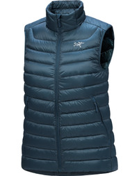 Light, warm down vest shines as an alpine midlayer and versatile standalone. This product was previously the Cerium LT Vest. Weighing just grams and packing smaller than a grapefruit, the Cerium Vest performs as a minimalist’s alpine midlayer or standalone in cool, dry conditions. Responsibly-sourced 850 fill down – with Coreloft™ synthetic utilized in areas prone to moisture – provides premium insulation, and the recycled 15D Arato™ nylon outer is light and durable. Streamlined in its design, it layers comfortably under a shell and easily fits into its included stuff sack for compact transport. Full Product Features Technical features - Moisture-resistant outer face fabric - Breathable - Lightweight - Compressible and packable - Wind resistant - Versatile Collar configuration - High collar adds warmth Construction - Down Composite Mapping™ strategically places synthetic insulation in areas where moisture may buildup and down in areas for maximum warmth - 850 fill European white goose down for exceptional warmth-to-weight ratio - Recycled 15D Arato™ outer is light, durable, and coloured with dope dyed yarns - Downproof 20D plant-based Arato™ liner is exceptionally lightweight and reduces petroleum use Design & Fit - Garment Centre Back Length: Size S is 24"/62cm - Varies by size Hem configuration - Adjustable hem draw cord seals out drafts Integrated features - Includes stuff sack for compact transport Patterning - Articulated patterning for unrestricted mobility Pocket configuration - Two hand pockets with zippers - Zippered internal security pocket Zippers & Fly configuration - TPU zipper-pulls reduce noise and are easy to grab - Reverse coil centre-front zipper improves durability and creates a streamlined profile Materials - Synthetic Insulation: Coreloft™ 80 (80 g/m²) - 100% Polyester - Down Insulation: 850 fill European white goose down, min 90/10, RDS - 100% White Goose Down (minimum 90% down) - Lining: Arato™ 20 - 100% Nylon - Body: Arato™ 15, recycled nylon microrip - 100% Nylon - Origin of fabric: JAPAN - Origin of dyeing: JAPAN - May release plastic microfibres into the environment when washing
